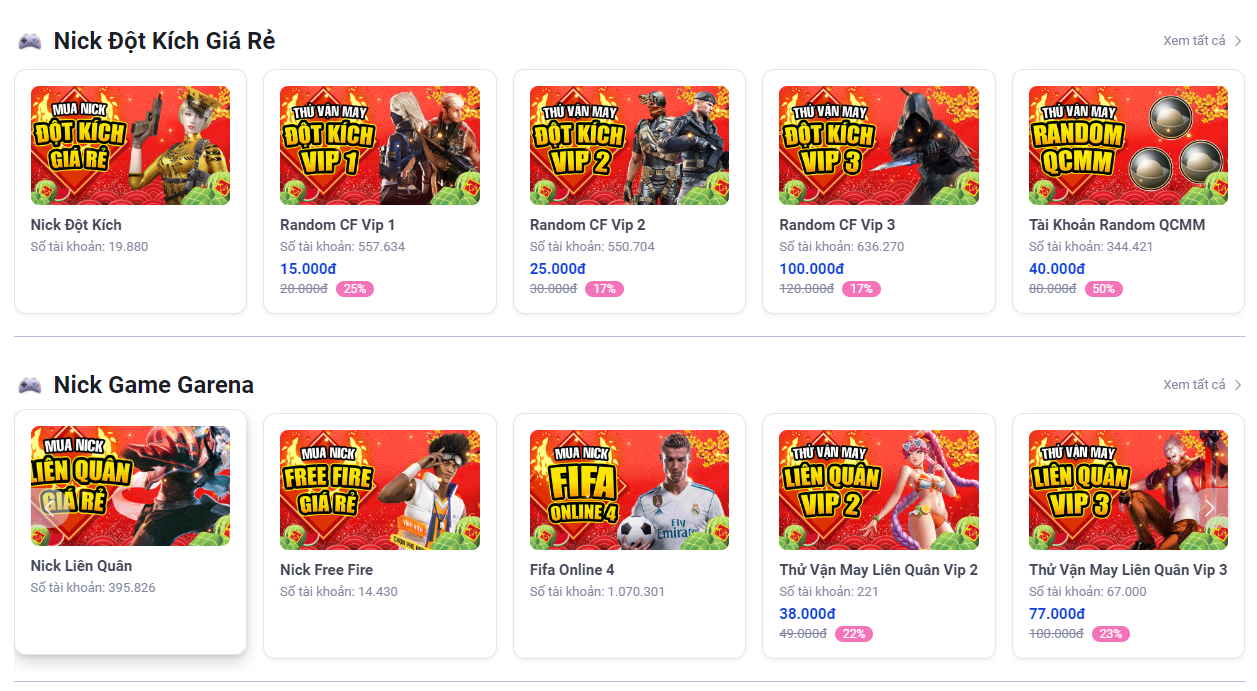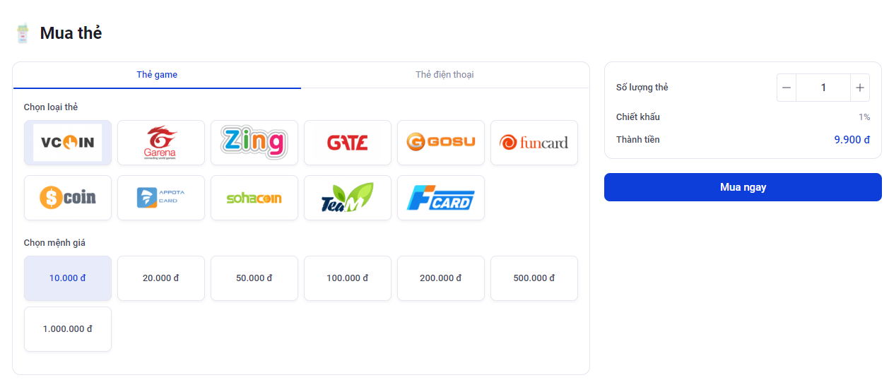 | 8 | Bán thẻ | Bán các loại mã thẻ dưới dạng mã văn bản | Xem chi tiết | |